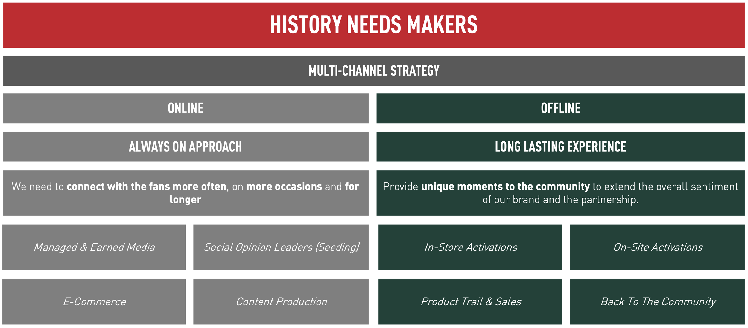 However, it wasn’t suitable for consumer-facing messaging. The tagline “History Needs Makers” became the campaign’s umbrella and the key message to the audience.